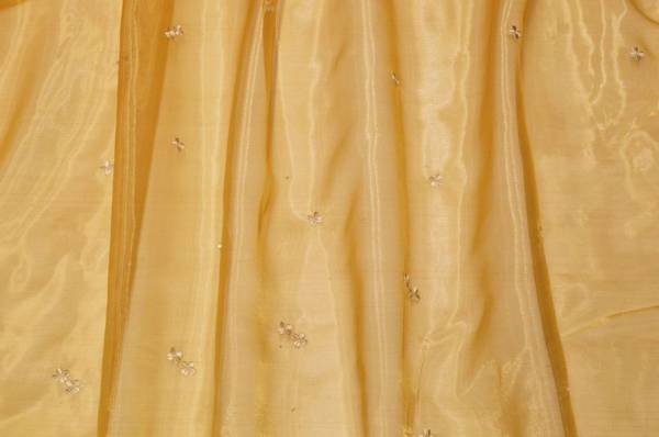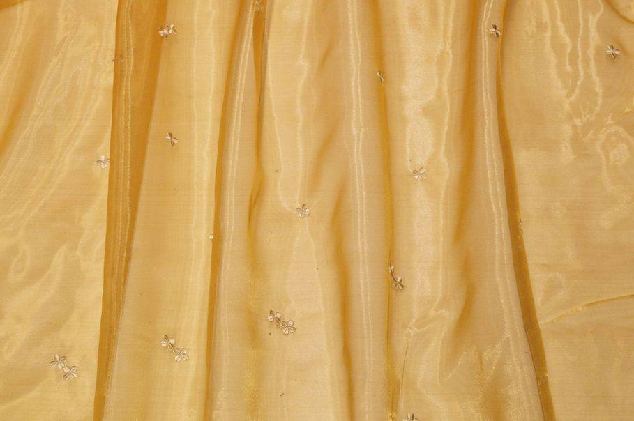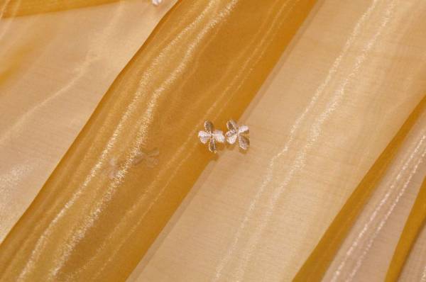 TESSUTO TENDA ORGANZA ORO CON FIORELLINO RICAMATO