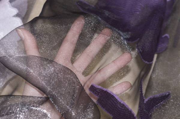 TESSUTO TENDA ORGANZA CON MAXI FIORE VIOLA