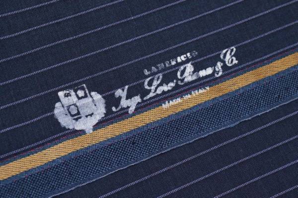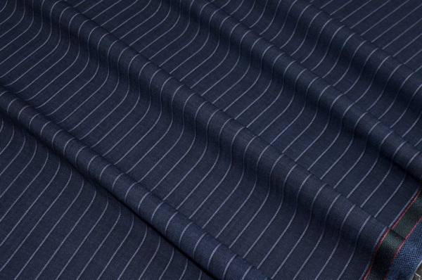 Il fondo blu è impreziosito da una sottile riga lilla creando l'elegante gessatura di 1 cm.