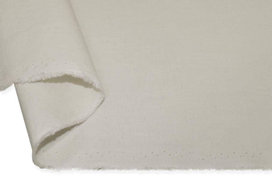 Tessuto misto lino in elegante tonalità panna. Al tatto presenta con una mano morbida e fresca. E' un prodotto pratico nella lavorazione e adatto a diversi tipi di capi estivi come giacchette leggere, abiti, top e gonne sia dallo stile casual che più formale.
