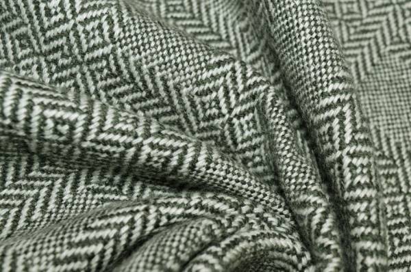Tessuto in pura lana per cappotti, dalla mano morbida e calda, ideale per capispalla invernali. La superficie presenta un motivo a scacchi di circa 4 x 3,5 cm, creato intrecciando filati bianchi e verdi. Grazie alla sua grammatura sostenuta, si presta perfettamente alla realizzazione di cappotti e giacconi di qualità per le stagioni autunno/inverno.