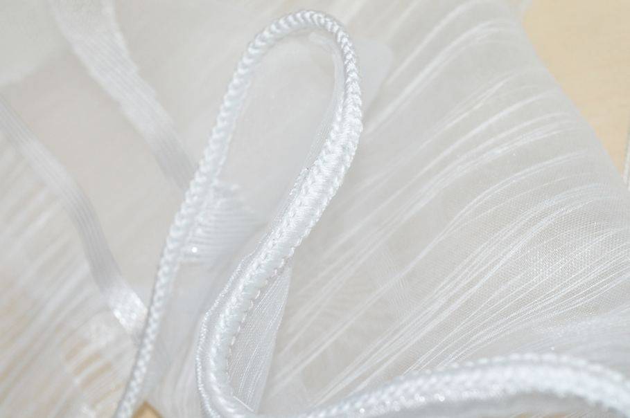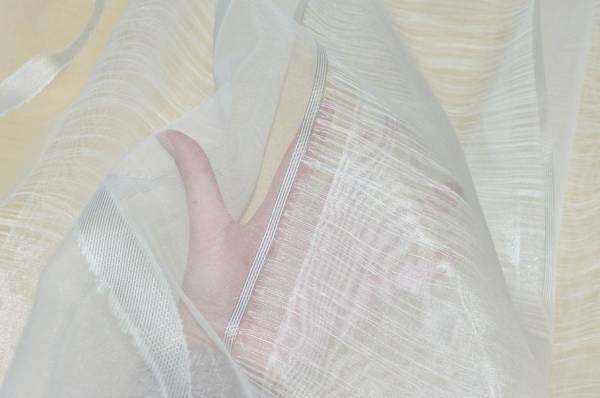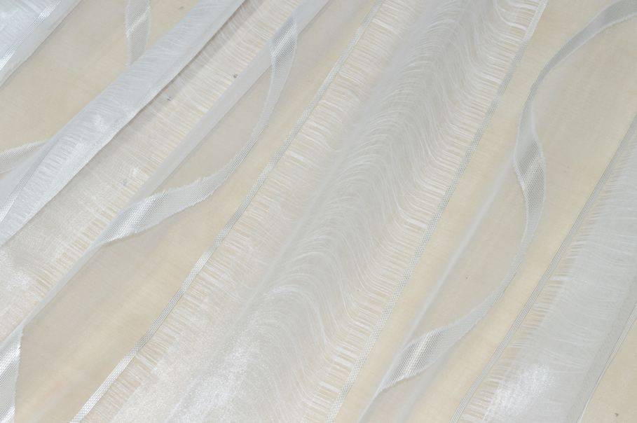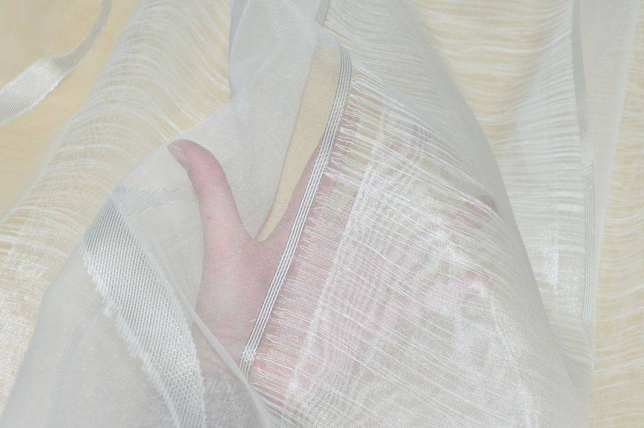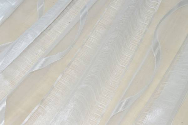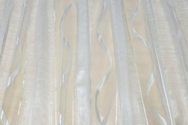 Tessuto in organza pensato per la realizzazione di tendaggi. Si distingue per la particolare lavorazione a fasce, alcune delle quali realizzate con doppio strato di organza che racchiude sottili filati orizzontali.