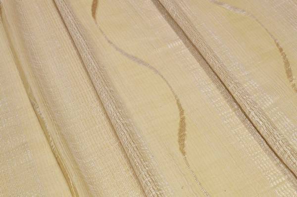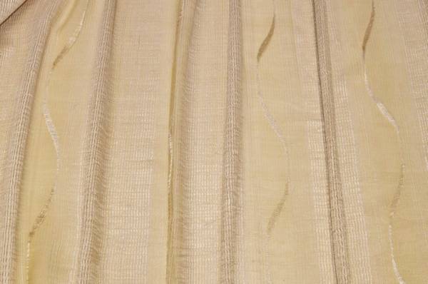 Il disegno è arricchito da un motivo ondulato che si sviluppa in verticale, in una raffinata tonalità oro luminosa e raffinata. Ideale per tende arricciate.