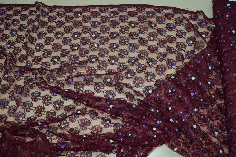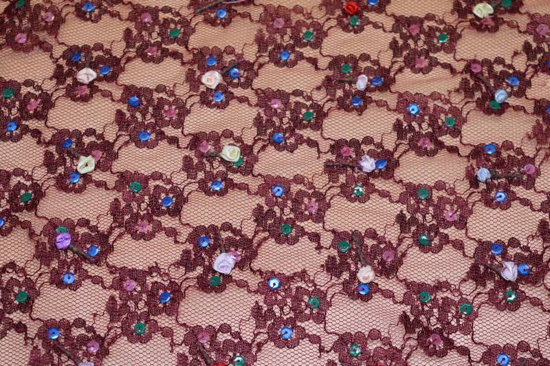 Vendita online tessuti abbigliamento sete pizzo bordeaux con fiorellini - Tessuti & Stoffe