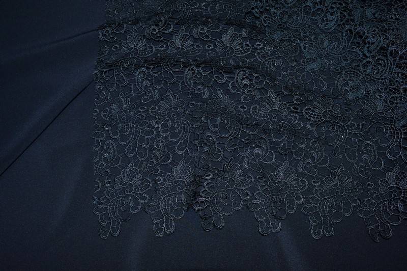 Vendita online tessuti abbigliamento crepe cady abbinamento cady larimar con pizzo macrame' col. blu - Tessuti & Stoffe