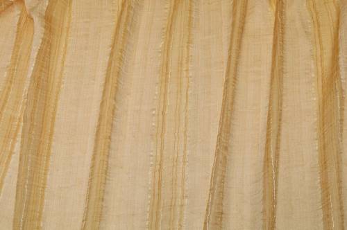 Tessuto shantung di medio peso, caratterizzato da una struttura sostenuta e luminosa, progettato specificamente per l'arredo casa. La sua versatilità lo rende perfetto per rivestire cuscini, creare calate per tende e copricassettone. Il fondo giallo caldo è arricchito da una raffinata fantasia tono su tono a tema foliage, che decora l'intera superficie in modo armonioso e elegante. La particolarità di questo tessuto risiede nelle sue irregolari fiammature, alcune delle quali leggermente in rilievo, un tratto distintivo tipico delle stoffe shantung, che conferisce al materiale un aspetto unico e sofisticato.