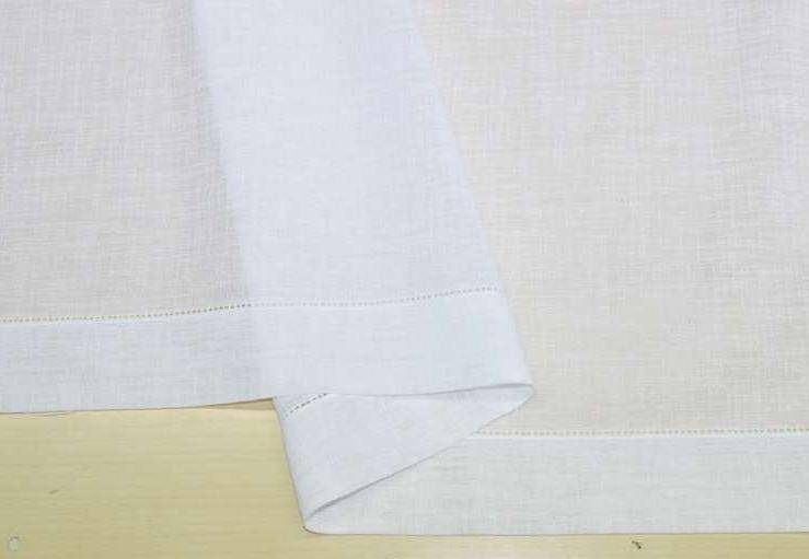 Tessuto medio leggero con trama effetto lino leggermente filtrante alla luce con bordi laterali da cm 5. Il prodotto è da confezionare facendo gli orli nel lato superiore ed in quello inferiore. Colore Bianco ottico (non panna).