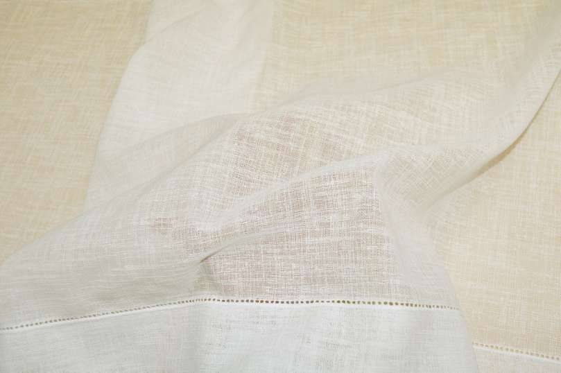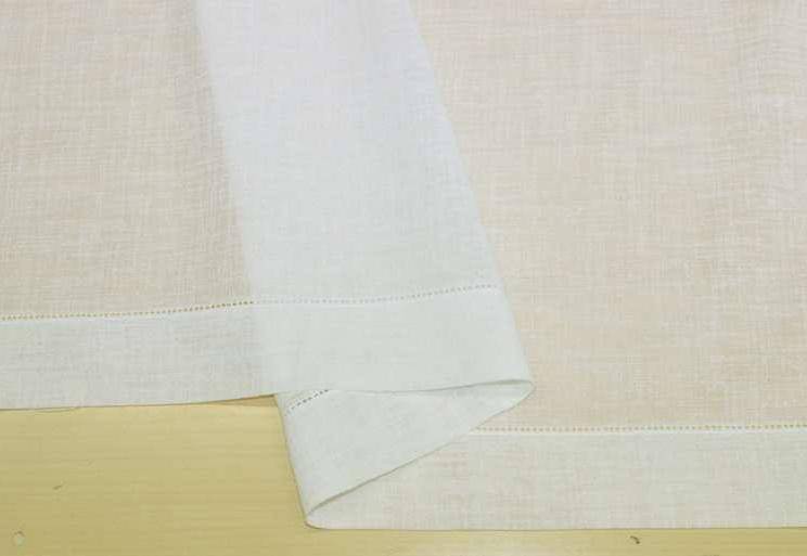 Tessuto medio leggero con trama effetto lino leggermente filtrante alla luce con bordi laterali da cm 5. Il prodotto è da confezionare facendo gli orli nel lato superiore ed in quello inferiore. Colore Bianco naturale (non candido).