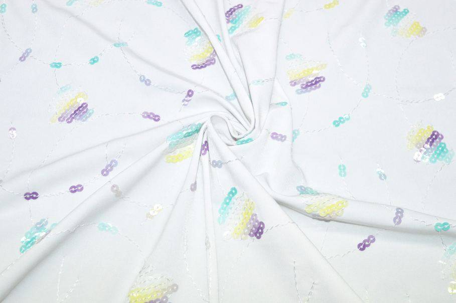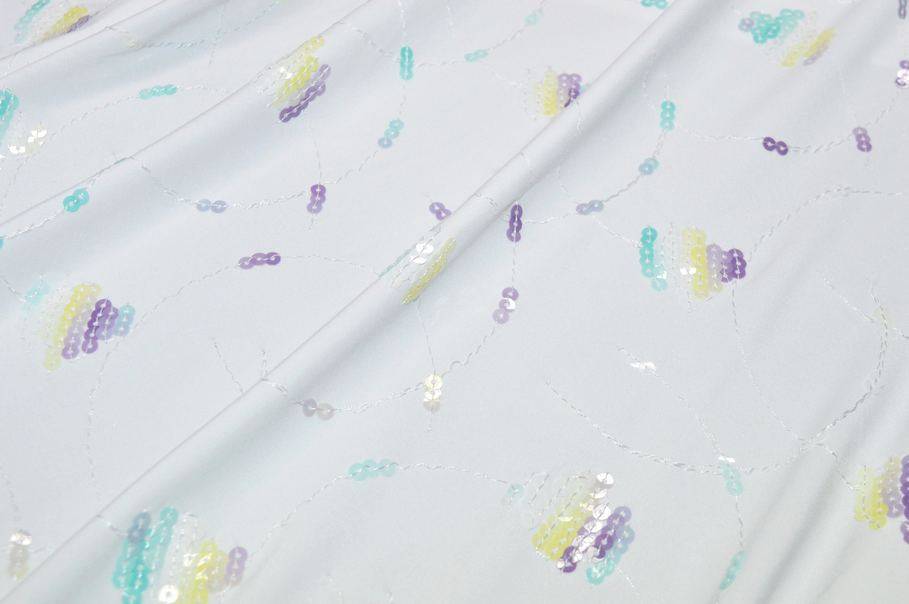 TESSUTO LYCRA BIANCA PAILLETES CUCITE