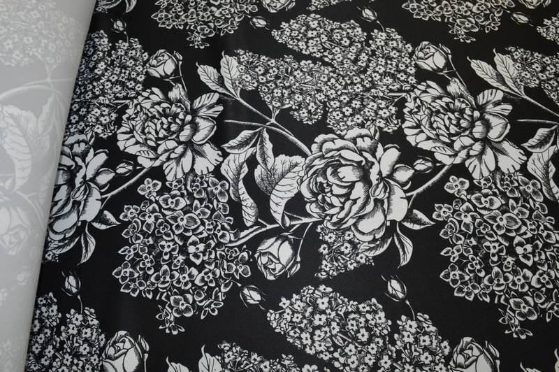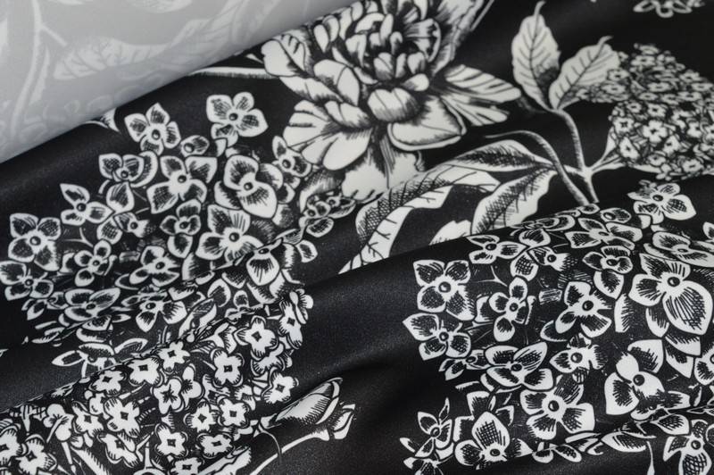 Vendita online tessuti abbigliamento taffetas / rasi shantung duchesse fantasia bianco/nera - Tessuti & Stoffe
