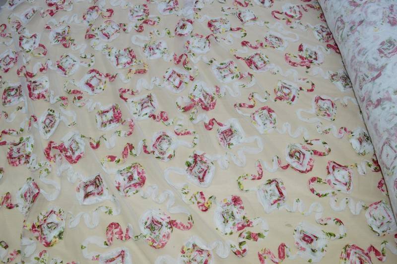 Tessuto fondo in tulle con fiori applicati idoneo per realizzare abbigliamento elegante di vario genere