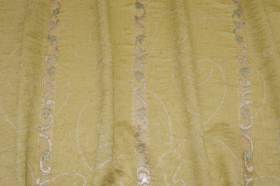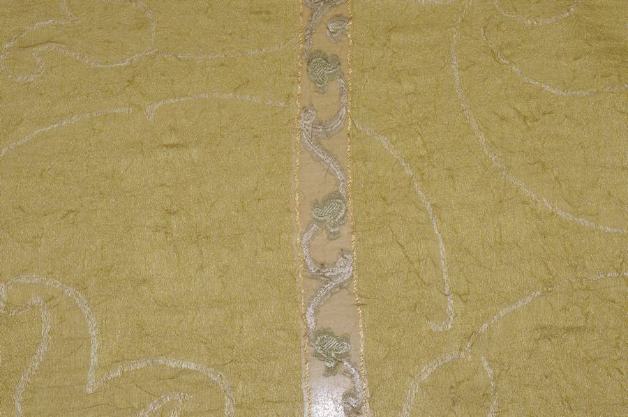 Tessuto morbido, effetto leggermente stropicciato con inserti lavorati fil coupè . Idoneo per tende arricciate. Rapporto disegno cm 30