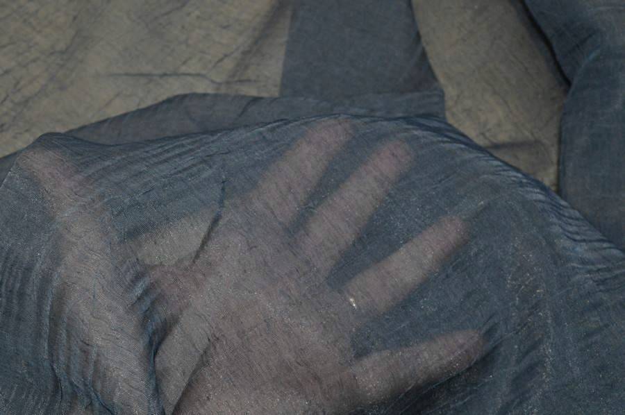 TESSUTO TENDA ORGANZA STROPICCIATA CANGIANTE GRIGIO/BLU