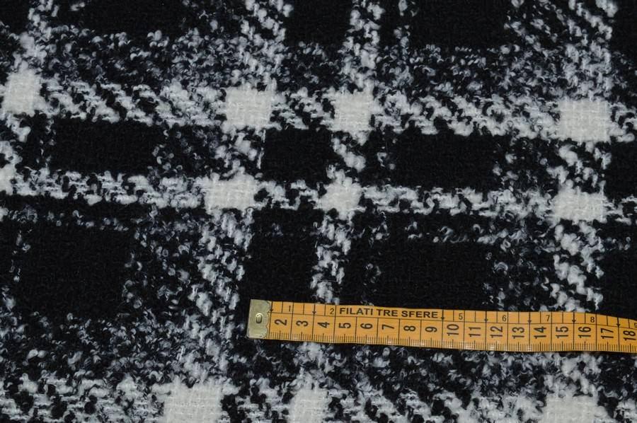 TESSUTO BUCLE MISTO LANA SCACCHI BIANCO/NERO