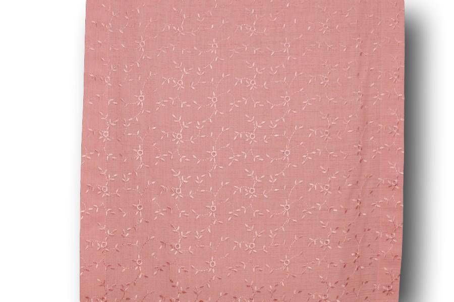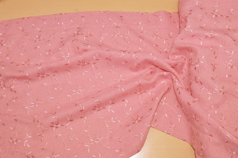Tessuto abbastanza coprente  ricamato su fondo rosa accesso. Tendino di facile manutenzione, lavabile in lavatrice a 30° ed estremamente resistente