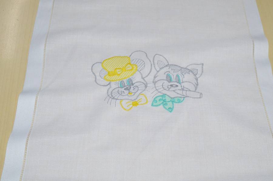 TENDINO MISTO LINO RICAMATO GATTINI LARGHEZZA CM 40