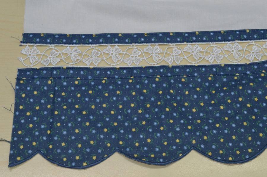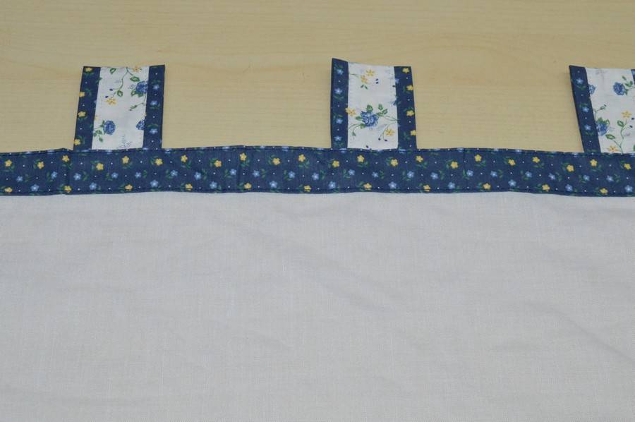 Vendita online tessuti per tende tendine metraggio vetro tendino tirolese balza cotone fiori blu altezza 240 - Tessuti & Stoffe