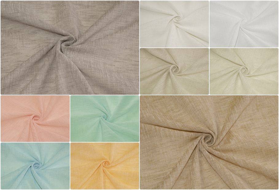 Tessuto con trama effetto lino di pesantezza media idoneo per pacchetti, tende a pannelli, a vetro e per qualsiasi altro tipo di tendaggio arricciato. NO STIRO.