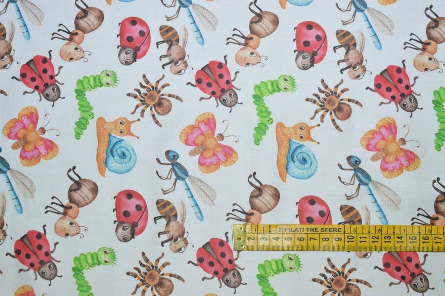 Vendita online tessuti arredo casa fantasie rasatello cotone fantasia insetti - Tessuti & Stoffe
