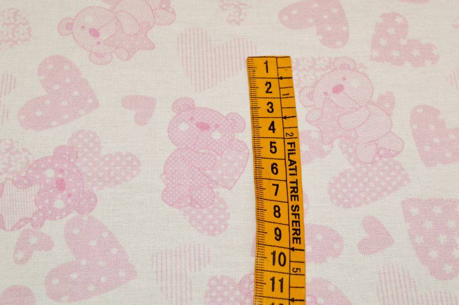 Il primo disegno è un micro pois bianco di 2 mm su fondo rosa. La seconda fantasia ha sottili righe orizzontali bianche e rosa di 1 mm ciascuna. Infine la terza illustrazione presenta dolcissimi orsacchiotti rosa su fondo bianco.