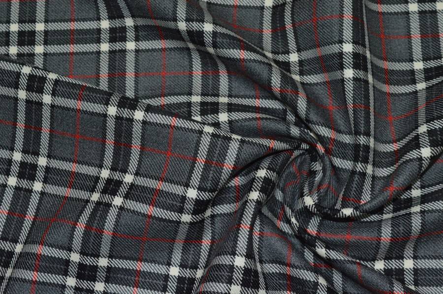 TESSUTO TARTAN SCOZZESE LANA GRIGIO NERO