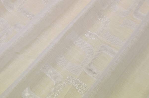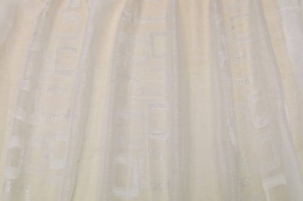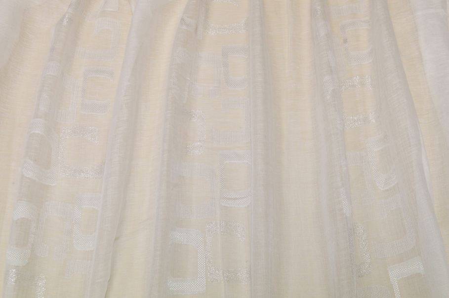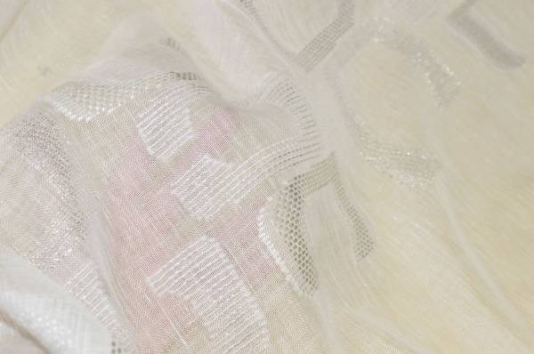 Tessuto Made in Italy di produzione "Monti&Monti". Tenda con fondo misto lino dall'aspetto leggero e filtrante alla luce. Ricamatocon fili lurex argento dona lucentezza all'ambiente. Ideale per tende arricciate.