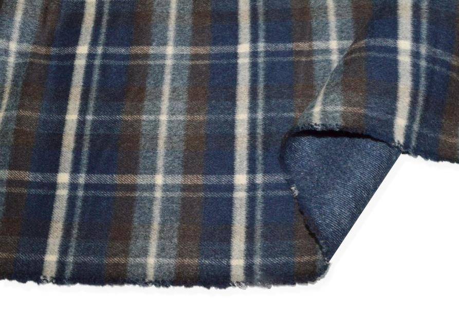 Ottimo tessuto in pura lana dalla mano morbida e calda. Presenta una fantasia dai colori bianco, grigio, blu e marrone che legano armoniosamente componendo lo scacco. Di pesantezza ideale per la realizzazione di giacconi e cappotti.