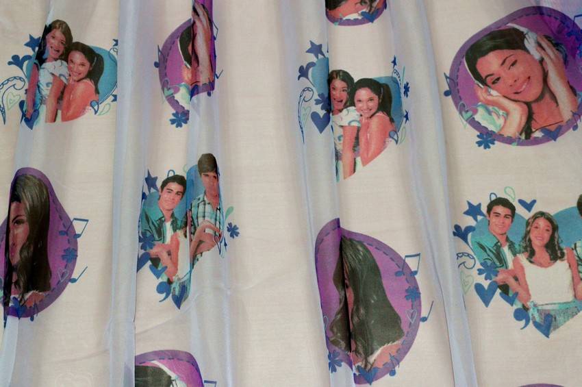 Tessuto per tende leggero, cadente e di fondo semi-trasparente. Decorato con stampa originale Disney dei personaggi principali della serie tv Violetta amata dai bambini. Ideale per realizzare tende arricciate.