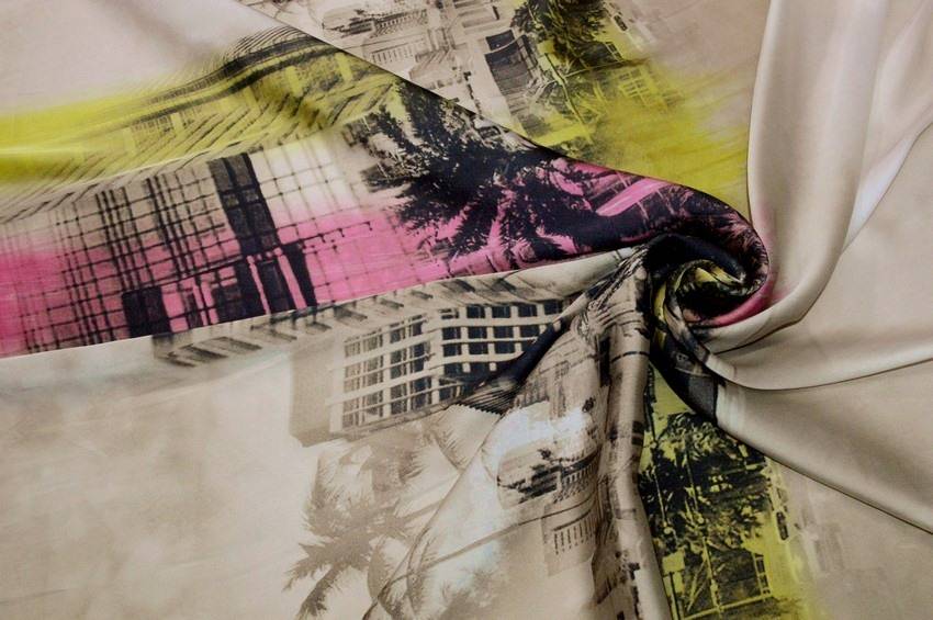 Vendita online tessuti abbigliamento poliestere scampolo rasatello fantasia city - Tessuti & Stoffe