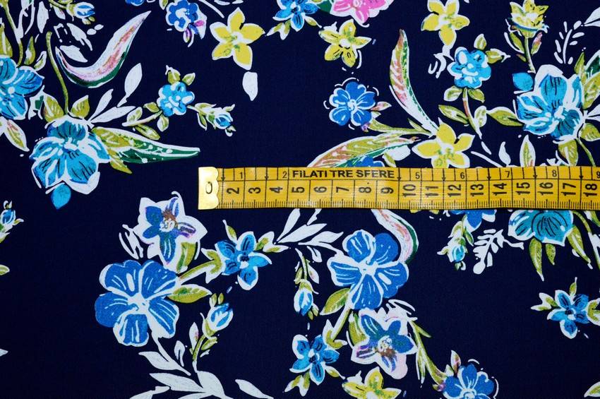 Vivace tessuto gabardine in cotone elasticizzato dalla mano fresca, morbida, cadente e coprente. Il fondo blu viene impreziosito dalla stampa floreale azzurra. Moderno ed allegro è perfetto per dare una svolta al proprio guardaroba realizzando pantaloni, gonne, abiti, camiciette e maglie primavera/estate.