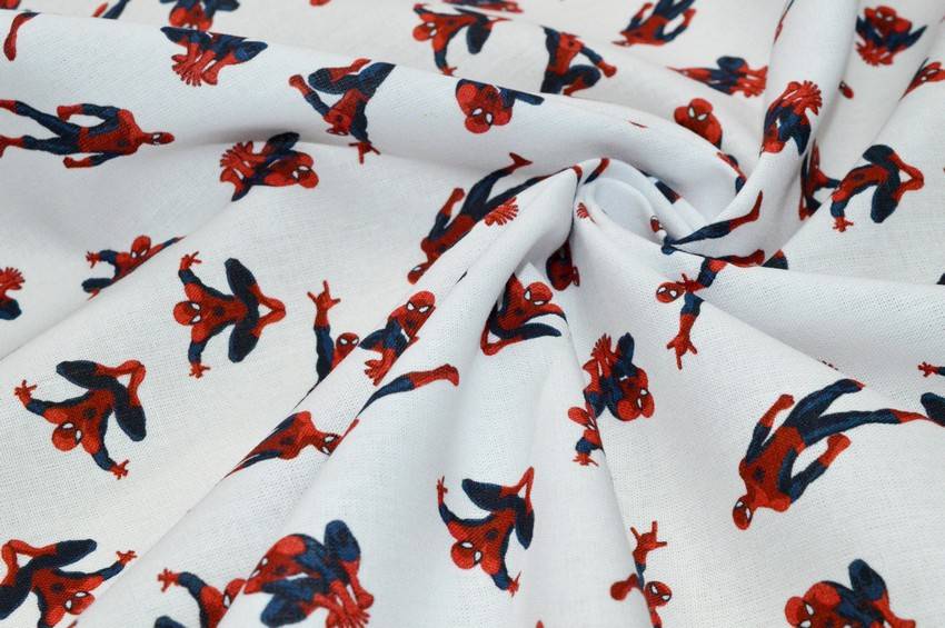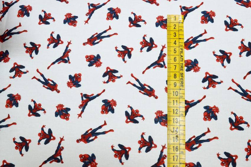 Tessuto originale Marvel in puro cotone al tatto morbido, leggero, di pesantezza lenzuolo. Il fondo bianco viene decorato dalla piccola stampa di Spiderman in diverse pose. Colorato e divertente è perfetto per aggiungere un tocco giocoso alla stanza. Usato per piccoli lavori di arredo camerette come copricuscini e lenzuolini.