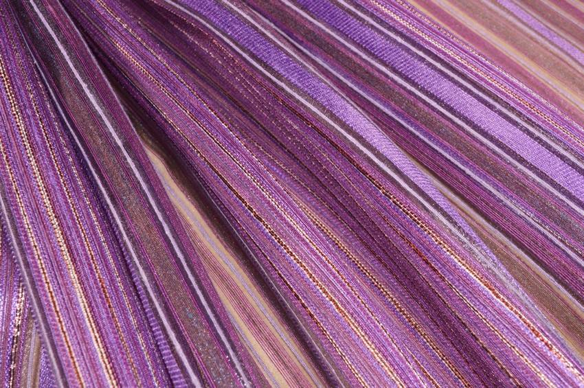 Splendido tessuto per tende semitrasparente. La fantasia rigata unisce diverse tonalità di viola, dona inoltre luminosità alla stanza poiché la stoffa risulta filtrante alla luce grazie alle sottili bande trasparenti in trama. Vivace ed originale è perfetto per ravvivare l'ambiente. Idoneo per realizzare tutti i tipi di tende arricciate.