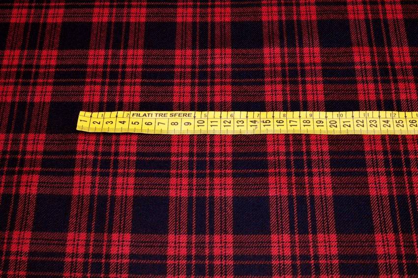 TESSUTO TARTAN SCOZZESE LANA ROSSO NERO