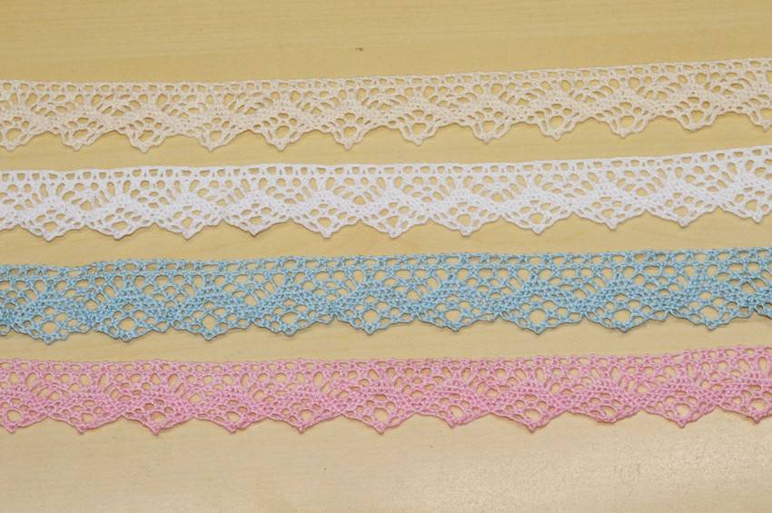 Pizzo in puro cotone di altezza 2 cm nelle varianti celeste, rosa, bianco e panna. Potrai cucirlo a mano o a macchina su strofinacci, asciugamani e lenzuoli. Ideale per per rifinire i tuoi abiti e le tue creazioni.