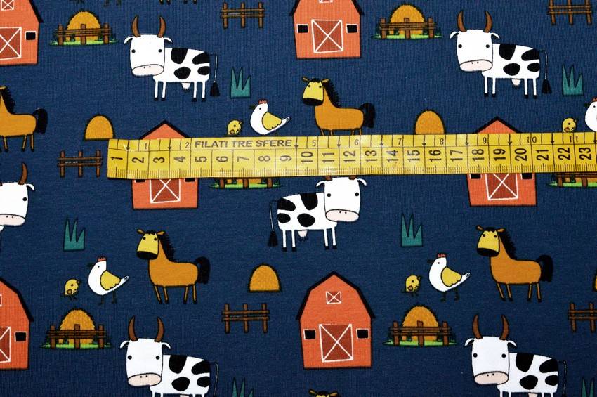 TESSUTO MAGLINA COTONE FANTASIA FARM BLU