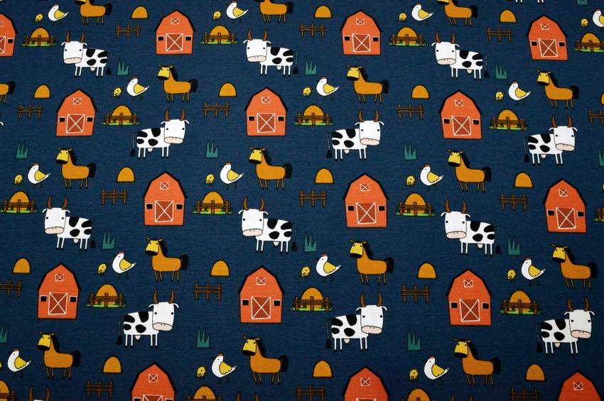 Vendita online cotoni tessuto maglina cotone fantasia farm blu - Tessuti & Stoffe