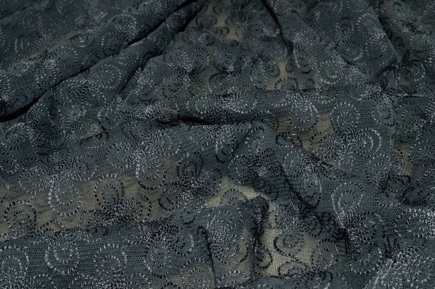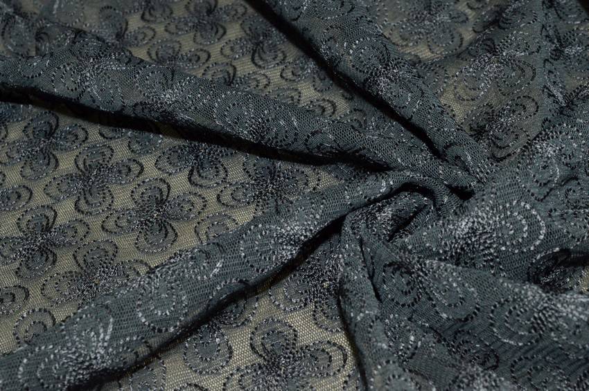 TESSUTO TULLE RICAMATO GRIGIO ELASTICIZZATO