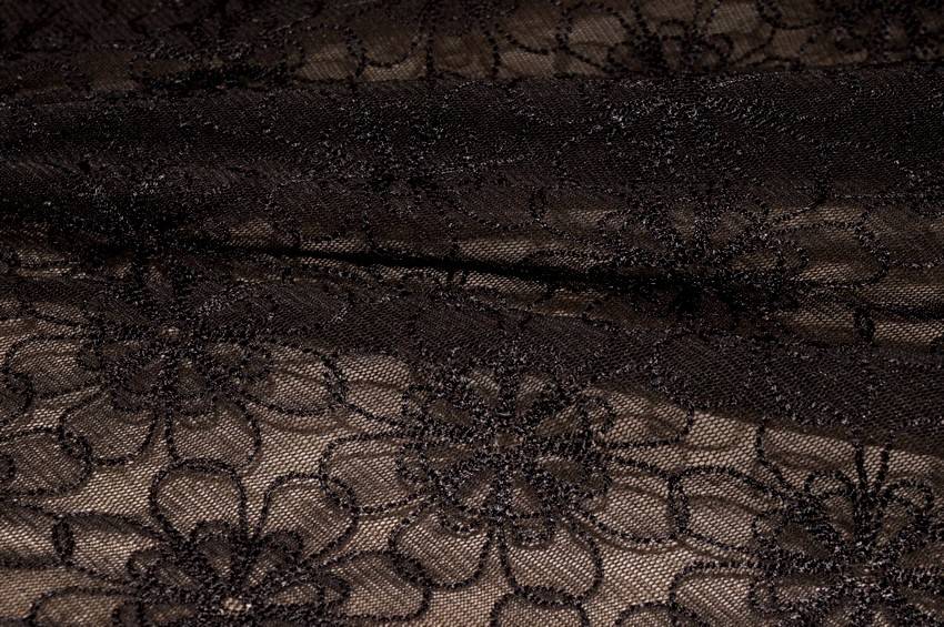 Vendita online occasioni scampoli magline stock tessuto tulle ricamato marrone scuro elasticizzato - Tessuti & Stoffe