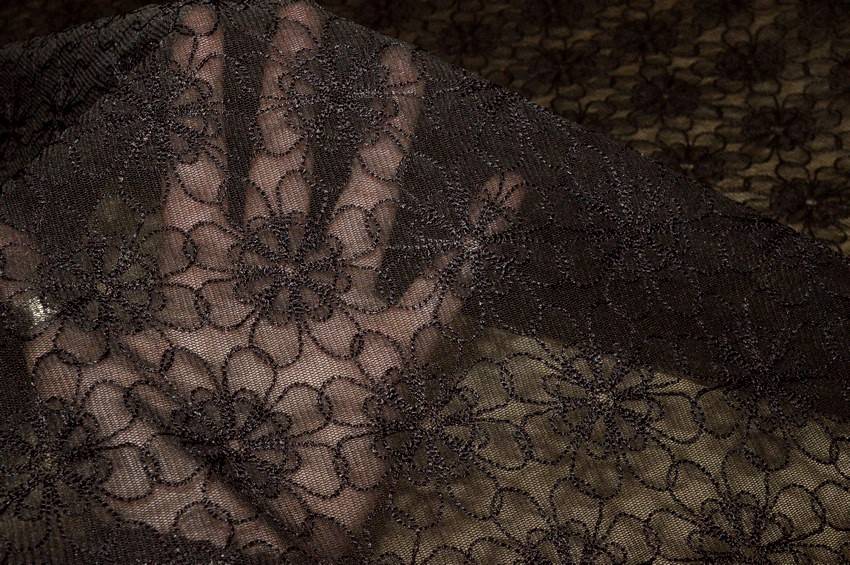TESSUTO TULLE RICAMATO MARRONE SCURO ELASTICIZZATO
