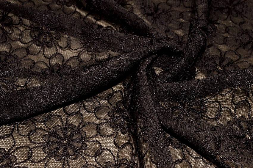 TESSUTO TULLE RICAMATO MARRONE SCURO ELASTICIZZATO