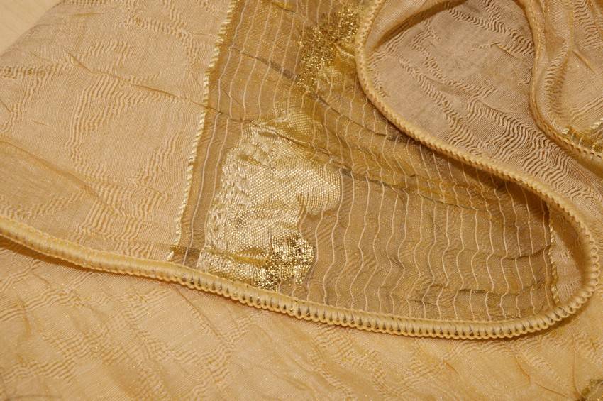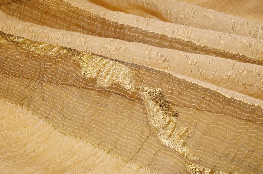 TESSUTO TENDA STROPICCIATO ORO CON APPLICAZIONI