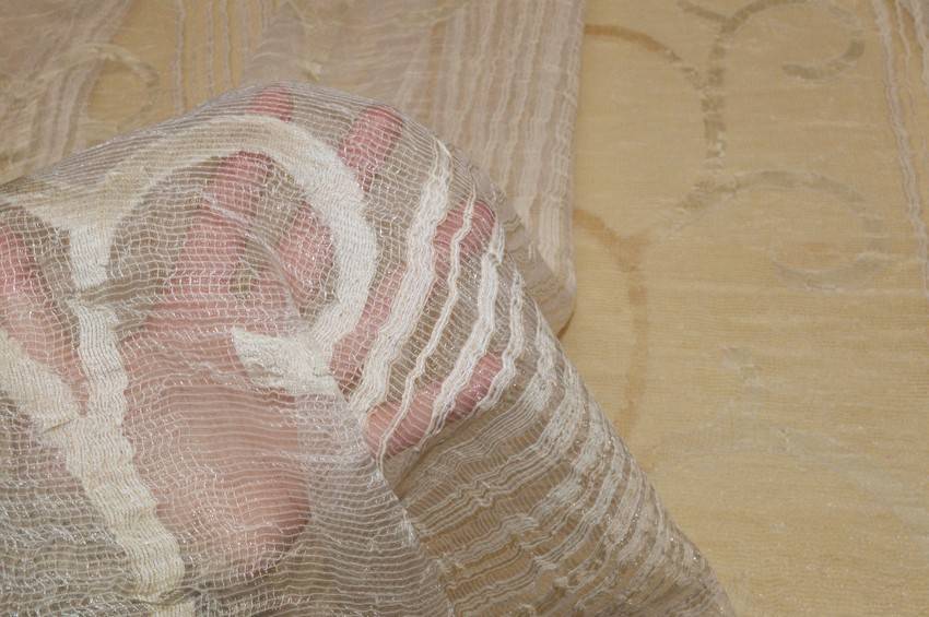 TESSUTO TENDA ORGANZA STROPICCIATA PANNA CON RICAMO