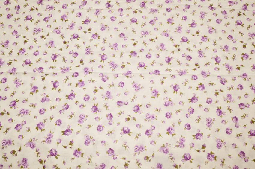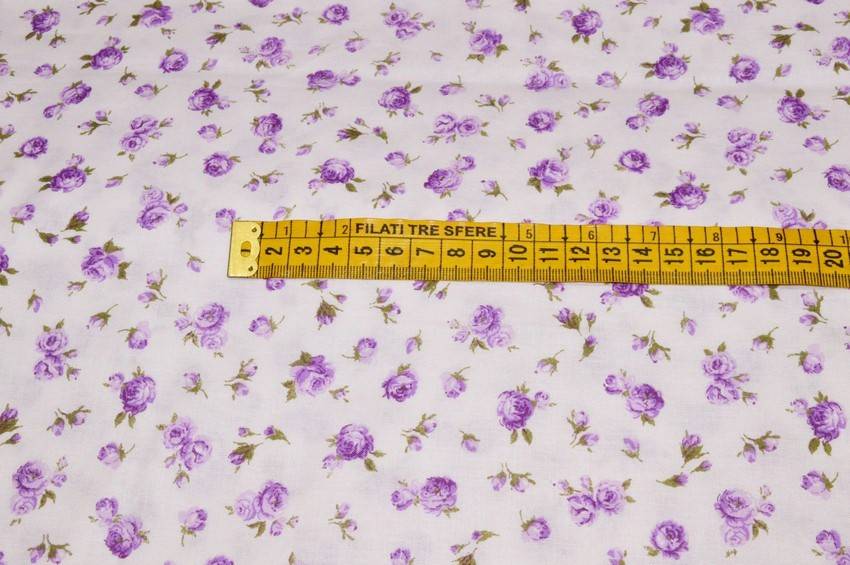 Tessuto in puro cotone dalla mano coprente e morbida. Il fondo bianco viene decorato dalla fantasia floreale lilla. Di pesantezza ideale per realizzare teli grandfoulard, rivestimento di cuscini, mantovane, lavori di cucito creativo, sacchi copripiumini e lenzuola.