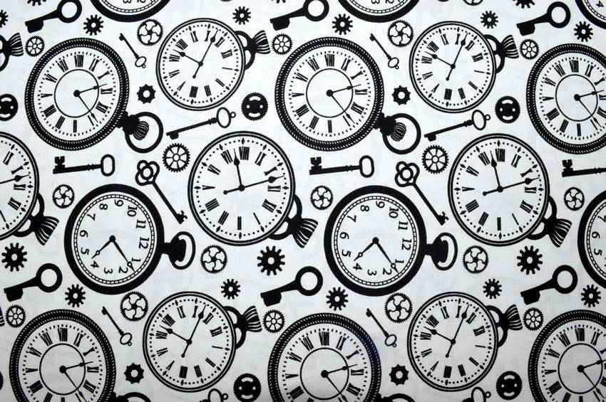 Tessuto in puro cotone di ottima qualità dalla mano morbida e confortevole. Il fondo bianco presenta orologi da taschino neri a contrasto. Simpatica e giocosa è la stoffa perfetta per creare piccoli lavori di arredo camerette come copricuscini e lenzuolini.