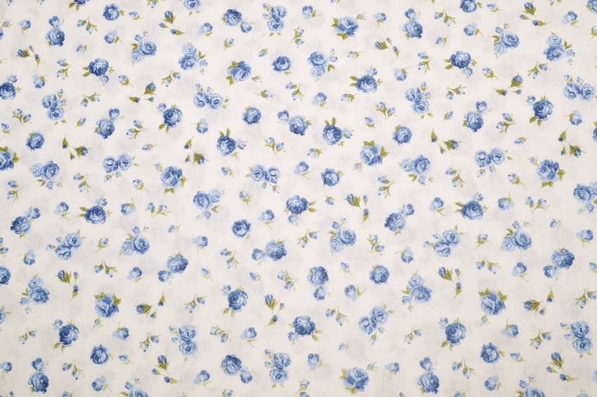 Tessuto in puro cotone dalla mano coprente e morbida. Il fondo bianco viene decorato dalla fantasia floreale azzurra. Di pesantezza ideale per realizzare teli grandfoulard, rivestimento di cuscini, mantovane, lavori di cucito creativo, sacchi copripiumini e lenzuola.