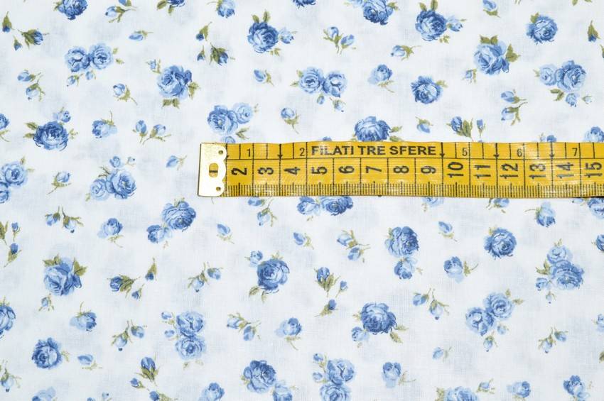 TESSUTO COTONE FANTASIA FIORELLINO AZZURRO