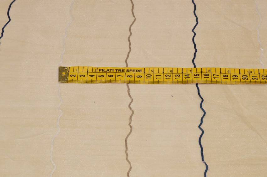 Vendita online tessuti per tende scampoli scampolo tenda organza stropicciata righino beige blu - Tessuti & Stoffe