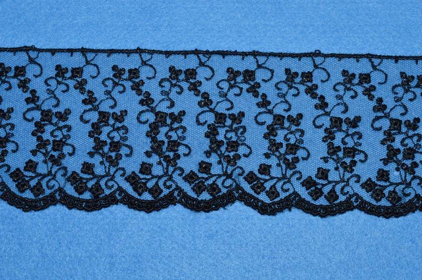Vendita online mercerie accessori cucito pizzi vari tulle ricamato nero altezza 7 cm - Tessuti & Stoffe