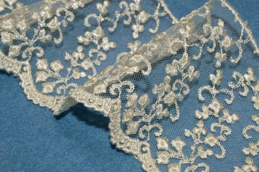 Vendita online mercerie accessori cucito pizzi vari tulle ricamato panna altezza 7 cm - Tessuti & Stoffe