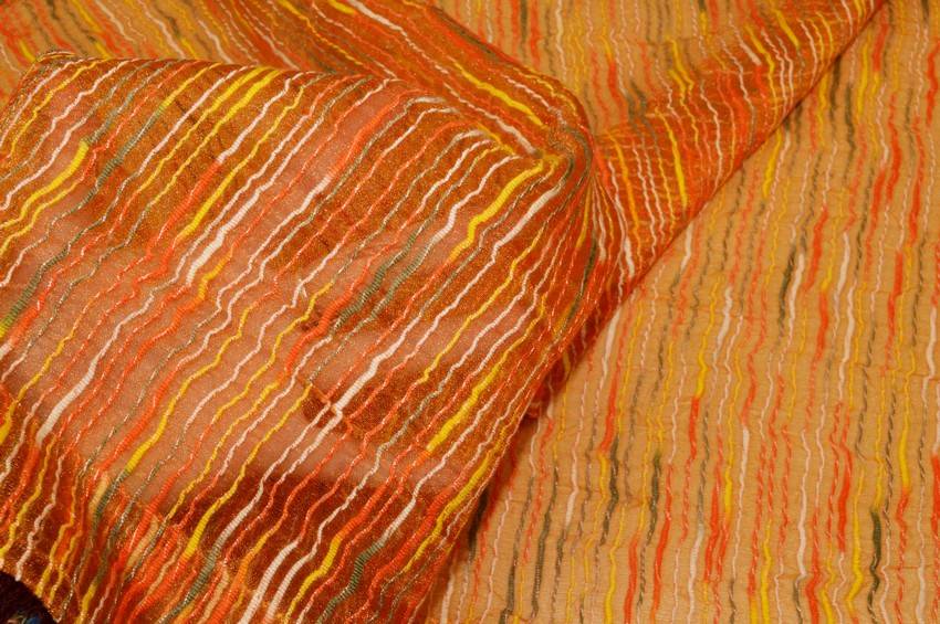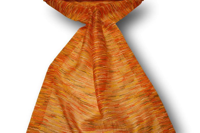 Tessuto per tendini a vetro con laterali gia orlati. Il fondo arancio viene impreziosito da sottili striature irregolari di diverse colorazioni per un effetto multicolor vivace ed originale.